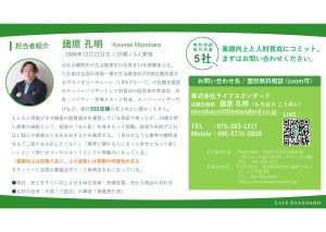 Mobile:090-5731-5858 / 担当:諸原(もろはら) morohara@lifestandard.co.jp